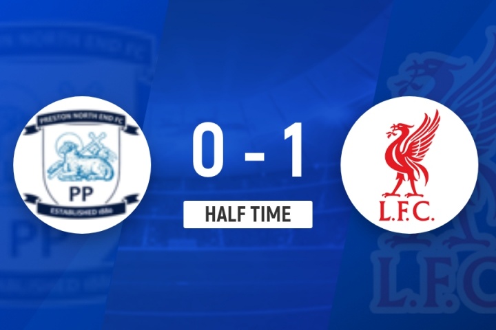上半场补时2分钟,普雷斯顿0-1利物浦。