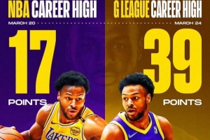 体育资讯3月25日讯 今日G league比赛,南湾湖人122-118击败圣克鲁兹勇士。